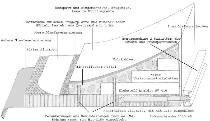Die in Freskotechnik gemalten Fragmente und den neuen